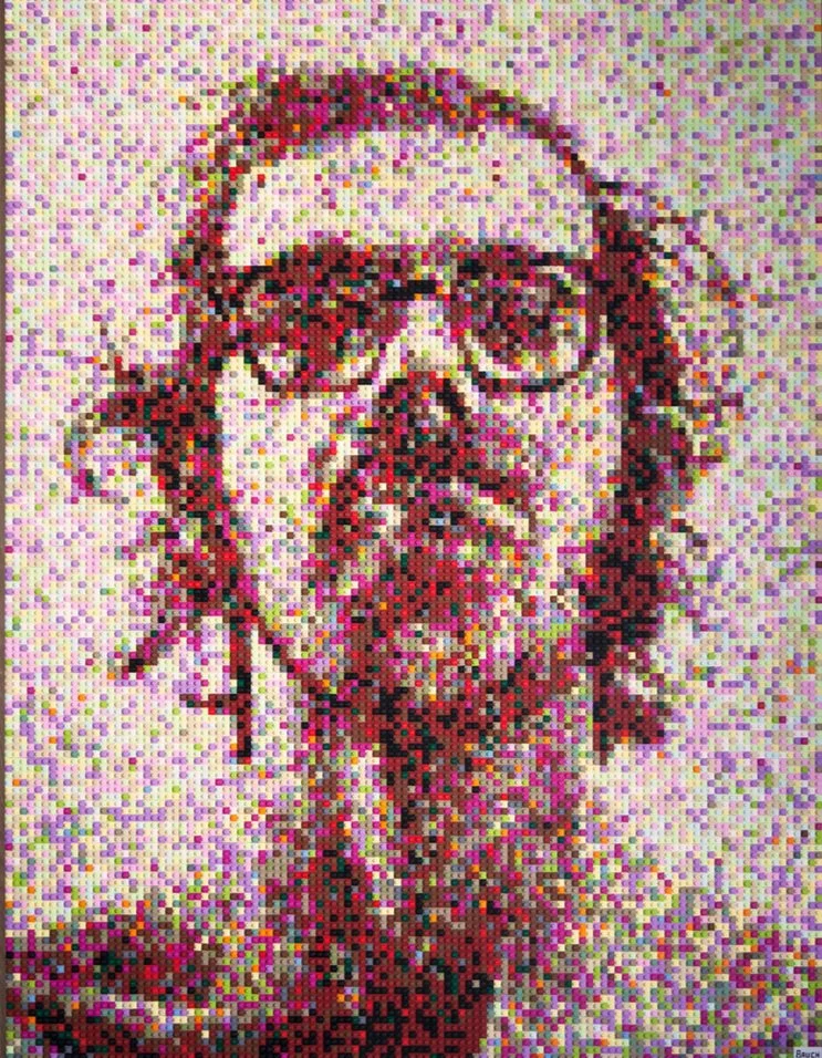 Andy Bauch, hailing from Boston and now residing in Los Angeles, crafts dynamic artworks using LEGO and various materials, prompting contemplation on the increasing dominance of the digital realm over the physical. Drawing inspiration from digital video compression techniques, Bauch opts for LEGO bricks, an instantly recognizable childhood staple, to mirror the pixelated essence of digitization. Employing computer algorithms and software, he meticulously constructs mosaics that symbolize the tangible representation of the abstract menace of technological singularity. Concealing data within icons of pop culture and art history, Bauch challenges viewers to rethink conventional notions of artistic materiality, inviting them to explore deeper and more intricate themes through the guise of cheerful plastic toys. His recent exhibition at The Getty Villa in Malibu showcased his innovative approach, further solidifying his place in the contemporary art scene.